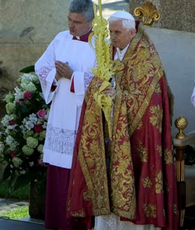 Bento XVI se deslocou no “papamóvel” e abençoou as palmas enquanto se aproximava do altar, desde o qual, após a procissão, começou a solene missa.