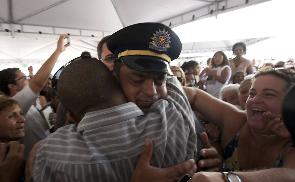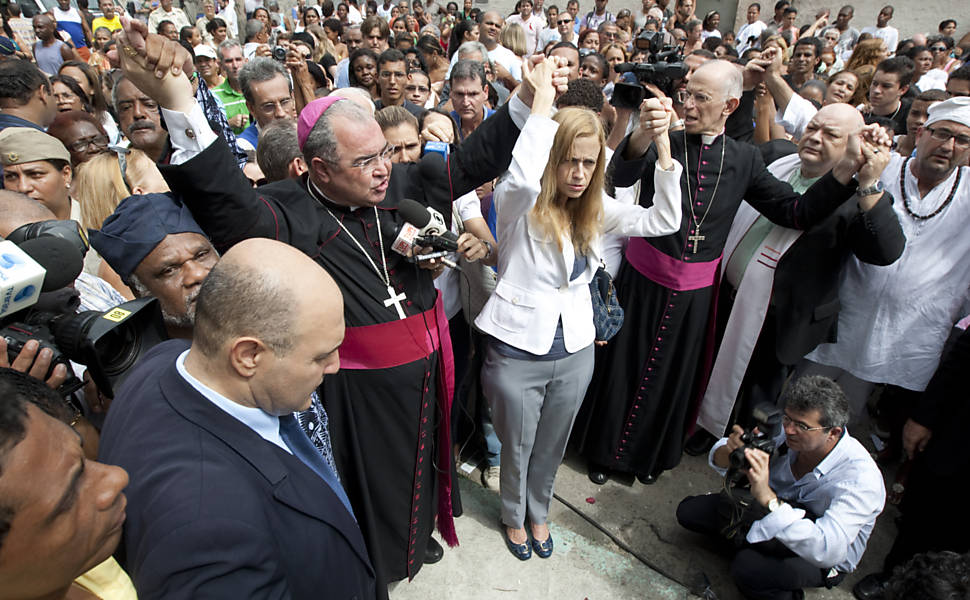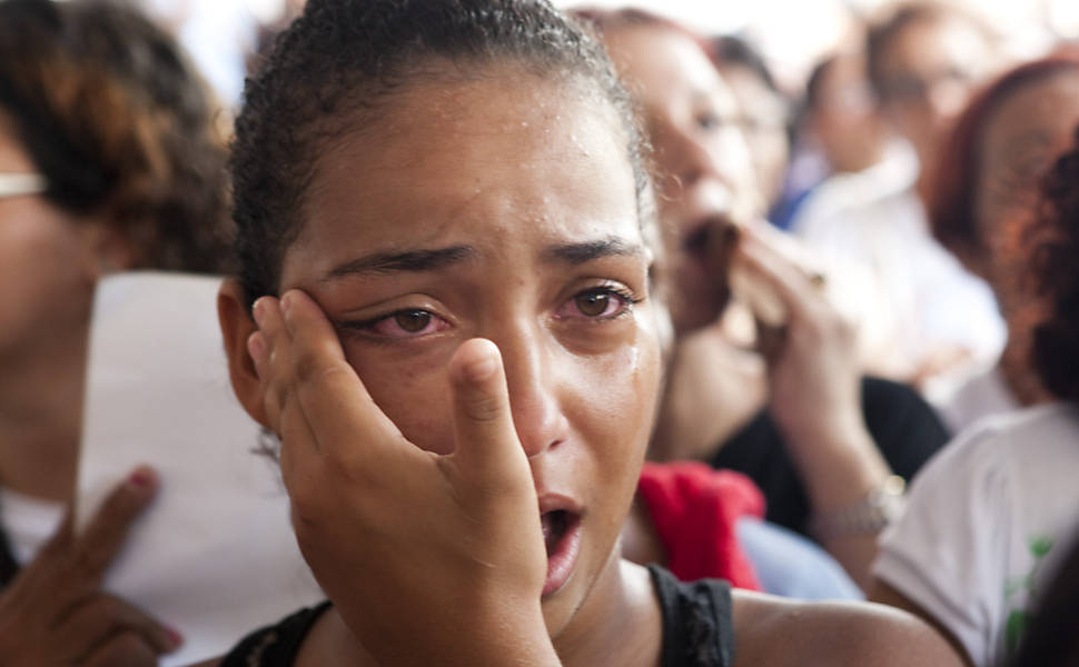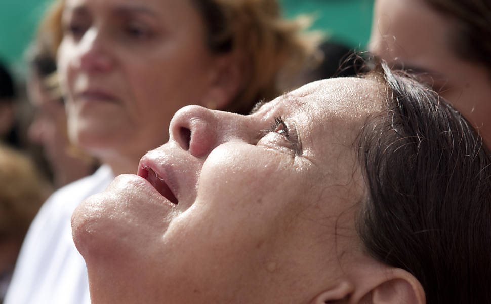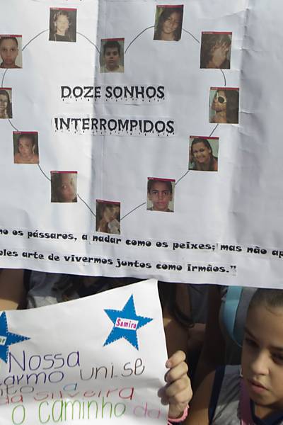 Imagens (Folhapress) da missa de sétimo dia em memória das 12 crianças barbarizadas na Escola Municipal Tasso da Silveira, no bairro de Realengo, no Rio.