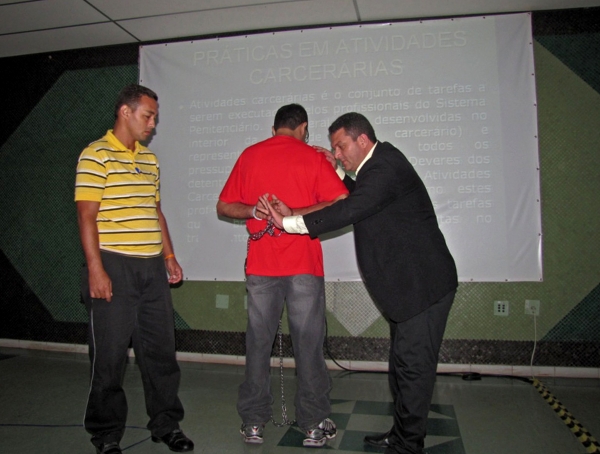 Durante o curso “Práticas em Atividades Carcerárias” os participantes assistiram a vídeos e encenações com a colaboração de agentes como meios pedagógicos. Ringo Alex detalhou técnicas de condução dos detentos e o uso de algemas. “Como manter segurança do agente e do preso e se portar em determinadas situações foram algumas das instruções repassadas aos agentes”, frisou Alex.