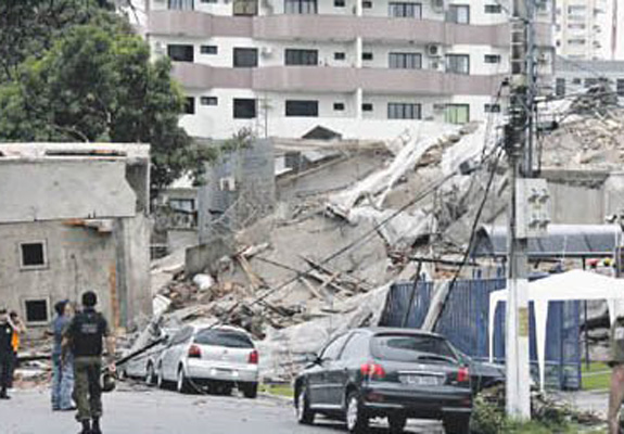 Instintivamente virei para a janela, na direção do som. Foi aí que me deparei com um volume fenomenal de concreto desmoronando, caindo, caindo, numa queda que me pareceu, contraditoriamente, ao mesmo tempo, rápida e lenta.