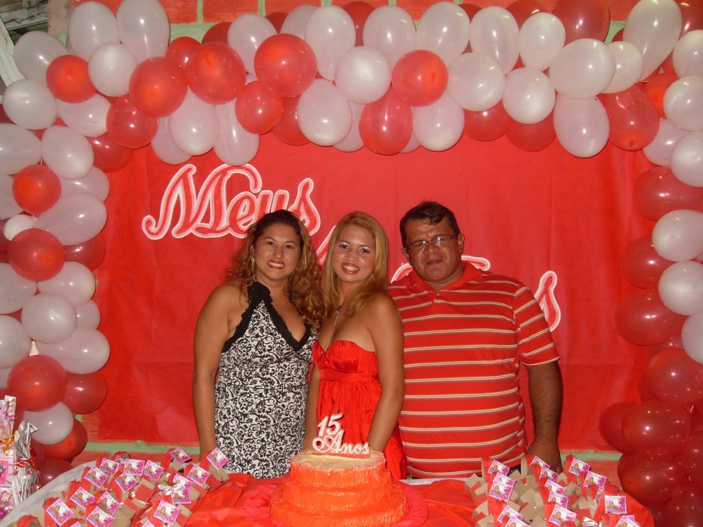 | Janielle com seus tios Josiane e Betinho |