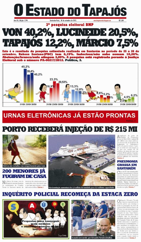 Arquivo 2012 Arquivo Geral 40,2% x 20,5%: Alexandre Von tem 19,7% de vantagem sobre Lucineide. 30 de setembro de 2012 - 11:10:009 de dezembro de 2019 - 20:42:36 blogdobetinho 0 comentários Eleições 2012 Total de Visualizações 1,693 total views, Visto hoje 9 views today Clique na imagem acima para ampliar. Fonte: Blog do Estado do Tapajós