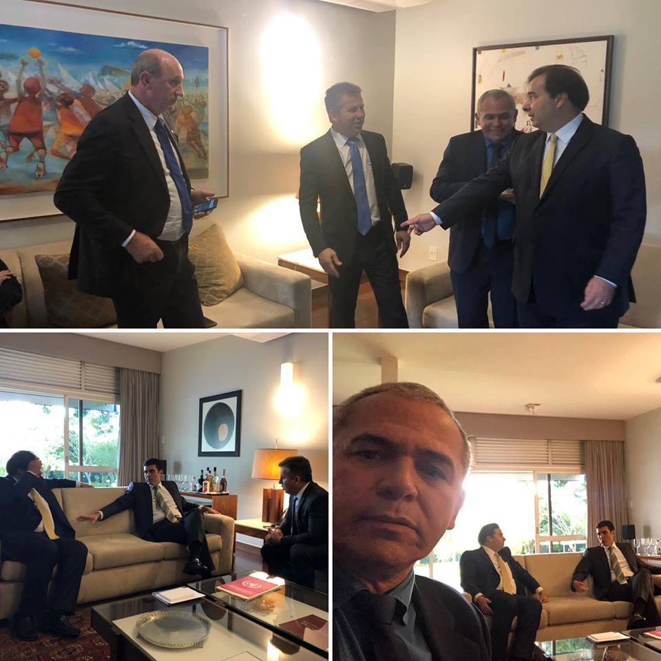 Audiência na residência do Dep Fed Rodrigo Maia-Dem, juntamente com o Helder Barbalho governador do Pará e Mauro Mendes governador do Mato Grosso. Em pauta o pagamento das compensações da Lei Kandir aos estados exportadores de commodities.