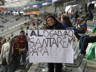 Chorei de emoção ao ver essa moça tão bonita, de cara pintada, jovem, em outro país, divulgando o nosso estado para o mundo todo ver. Vamos publicar nos jornais locais de Santarém, blogs, autdoor, afinal ela é de Santarém.